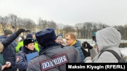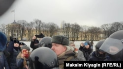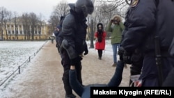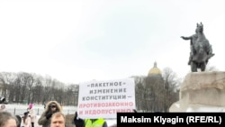 В Петербурге на Сенатской площади на пикетах против поправок в Конституцию задерживают активистов, сообщает корреспондент Север.Реалии.