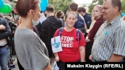 На акцию 1 августа пришло около 100 человек. Начались одиночные пикеты, полиция проверяет документы и говорит, что проводить публичные мероприятия запрещено.