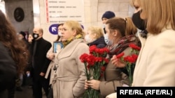 После панихиды родственники жертв теракта возложили цветы к мемориальной доске, установленной на станции "Технологический институт", куда четыре года назад прибыл поезд, в вагоне которого произошел взрыв.