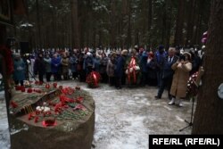 На Левашовской пустоши, где находится бывший специальный расстрельный полигон НКВД, местные власти, жители Петербурга и других российских регионов возложили цветы.
