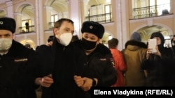 Вместо плакатов больше 30 участников акции вставали в цепку и молча стояли перед группой полицейских. Полиция периодически проходила вдоль протестующих и предупреждала о том, что из-за коронавируса все публичные и массовые мероприятия в городе запрещены. Хотя накануне, 23 февраля, в Петербурге полицейские сопровождали акцию сторонников признания российскими властями "ЛНР" и "ДНР", среди участников которых были члены "Молодой гвардии "Единой России". Они спокойно устроили пеший марш в центре города с плакатами и флагами самопровозглашенных республик. Полиция при этом никого не задерживала и даже не предупреждала о незаконности мероприятия.