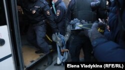 Митинг 27 февраля практически сразу начался с задержаний – полицейские забирали в автозаки любого, кто разворачивал плакаты. К полицейским попадали и те, кто просто стоял в толпе, скандировал лозунги или хлопал. Задержания были жесткими: людей вырывали из толпы, одному из мужчин порвали джинсы, другому участнику акции – Глебу Тарасову – при задержании сломали нос.