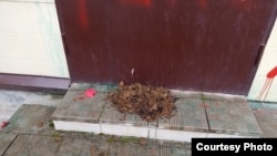 Надпись "предатель" также сегодня ночью появилась на дверях квартир у двух петербургских активистов Асана Мумджи и Ольги Смирновой. Неизвестные оставили после записки с угрозами и навоз.